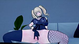 金发可爱女孩用振动器在动漫场景中大声呻吟