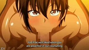 Intriguing contrast: Hot laboratory anime girl with big tits in Rule34 3D animation performs sitting handjob and deepthroat for monster cock cumshot.