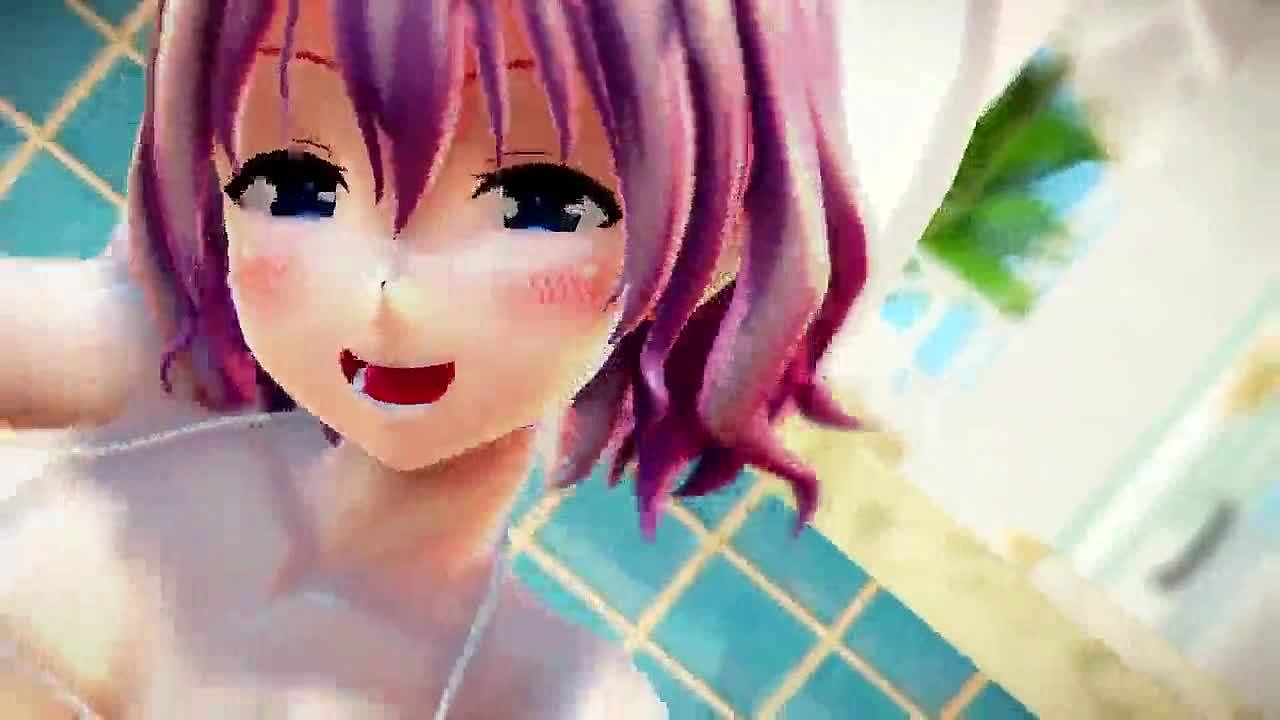 Short hair girl strips teasingly in onegai darling dance undress